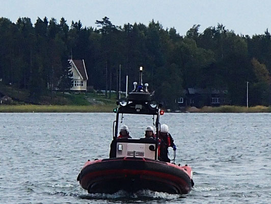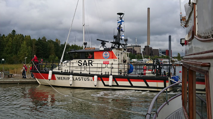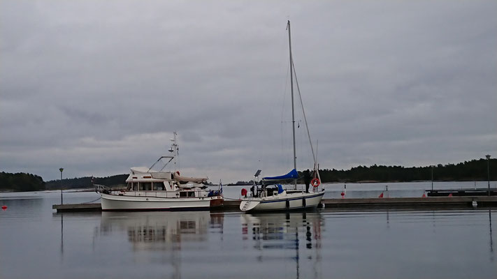 Um 1045 Leinen los. Innerhalb einer Stunde geht der Wind alle Richtungen des Kompasses durch mit Geschwindigkeiten von 2 – 10 m/s. Auf dem Rücken vor Kytö hohe Wellen. Beim Anlegen kann ich beide Heckbojen befestigen, werde aber vom Wind über die Backbordboje gedrückt, ohne es zu bemerken und ohne die Zeichen, die Ulla vom Steg gibt, zu verstehen. Als Folge gerät der Bojenhaken in den Propeller. Da ich nicht weiß, wo der Schaden tatsächlich ist, kann ich mich auch mit dem Boot nicht mehr bewegen. Ein Boot der Seerettung, Rautauoma, kommt zu Hilfe und zieht mich an den Steg. Am nächsten Abend kommt ein Taucher und löst Leinen und Bojenhaken vom Propeller. Nach seiner Meinung sind keine bedeutenden Schäden entstanden. Das werden wir aber endgültig erst im Winter in der Halle feststellen können.