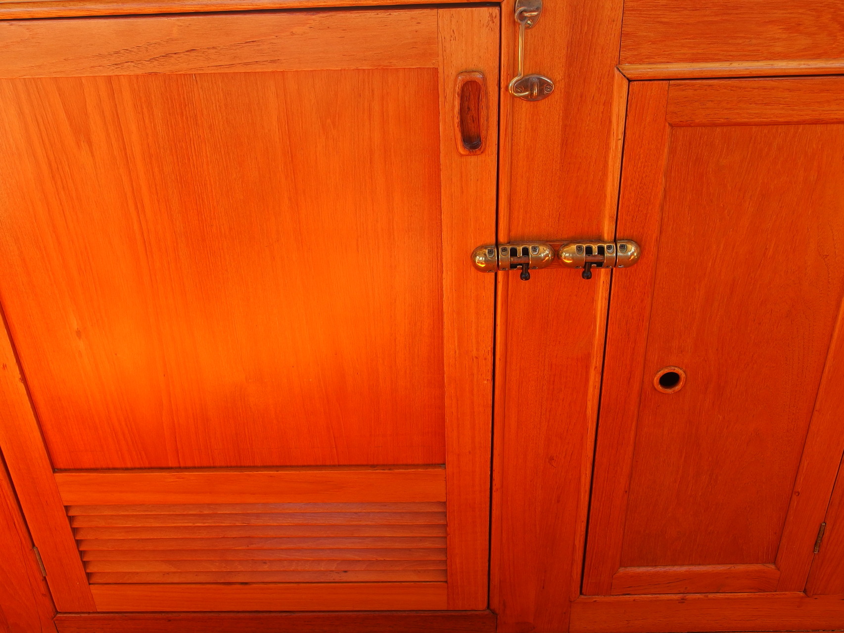 - kiinnitetty etukajuutan paapuurin teakpaneelit takaisin