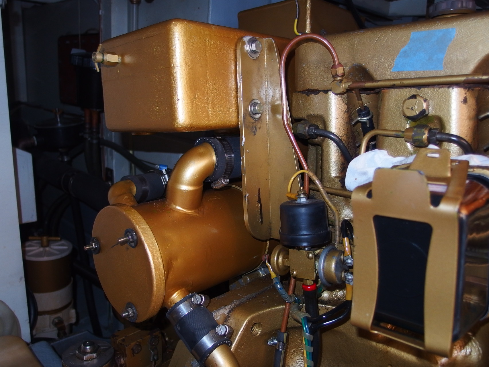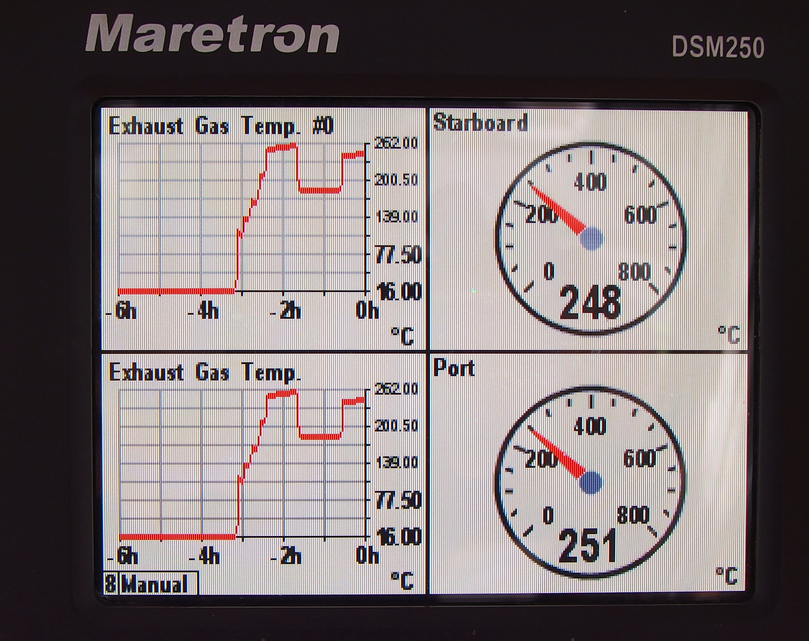 - Heute klärte sich, dass die Monteure beim Auffüllen der Motoren mit Kühlflüssigkeit keine Entlüftung durchgeführt hatten und sich somit Lufttaschen im Kühlsystem bildeten. Der Fehler ist nun behoben und 5 sm sind wir im Test ohne Probleme gefahren. Mit den neuen Thermostaten kamen wir auf eine Arbeitstemperatur der Motoren von 83 Grad C. Gleichzeitig zeigen die Abgastemperaturfühler 290 Grad C.