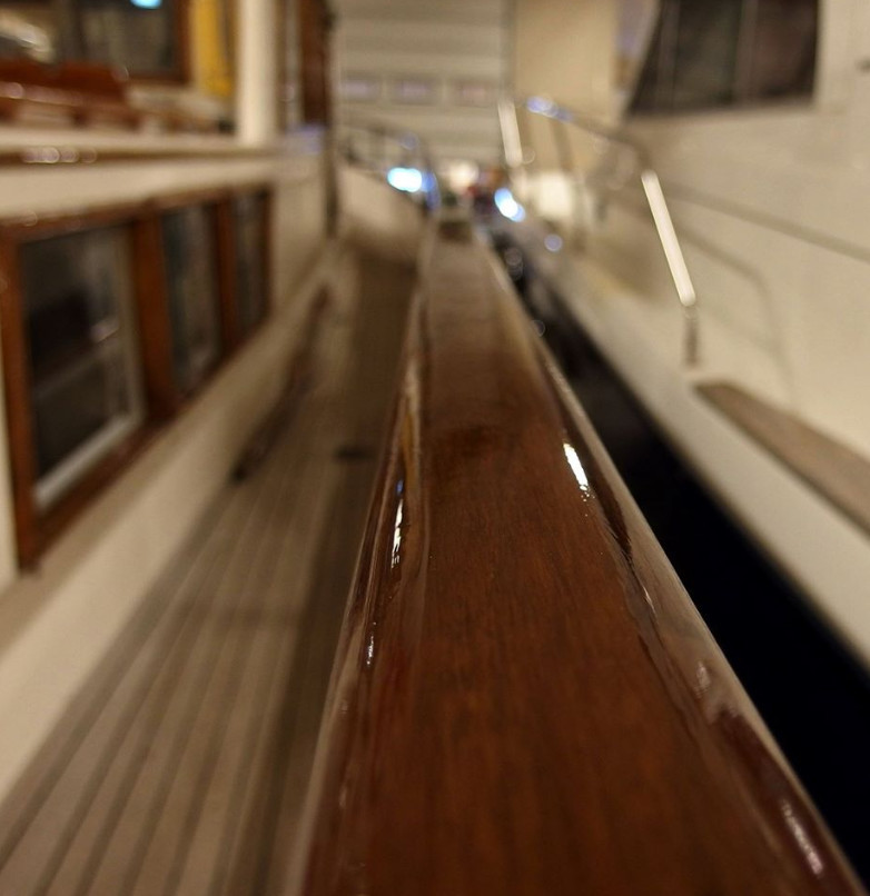 - MC:n kiinni olevat teakpaneelit hiottu ja lakattu 1. kerta