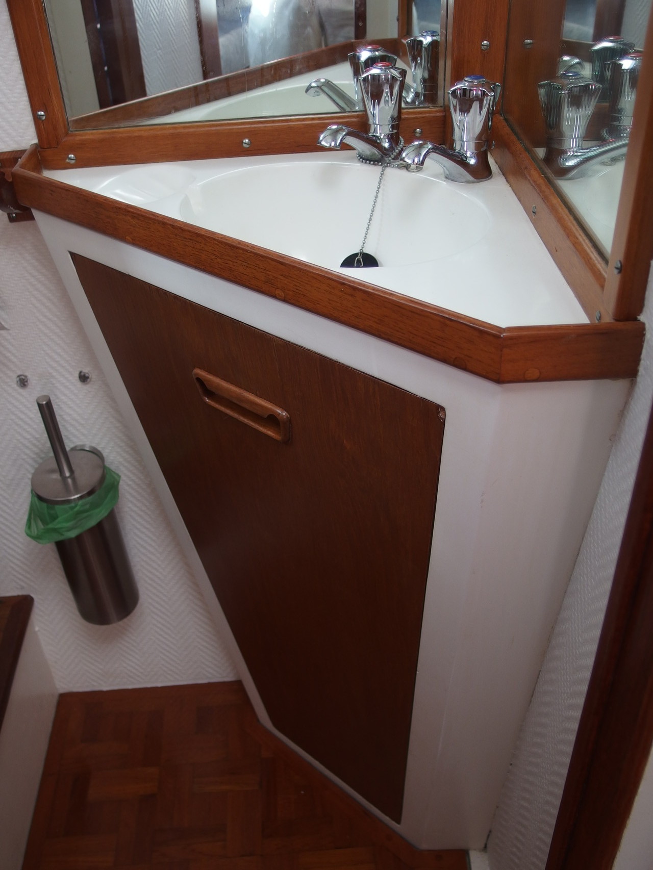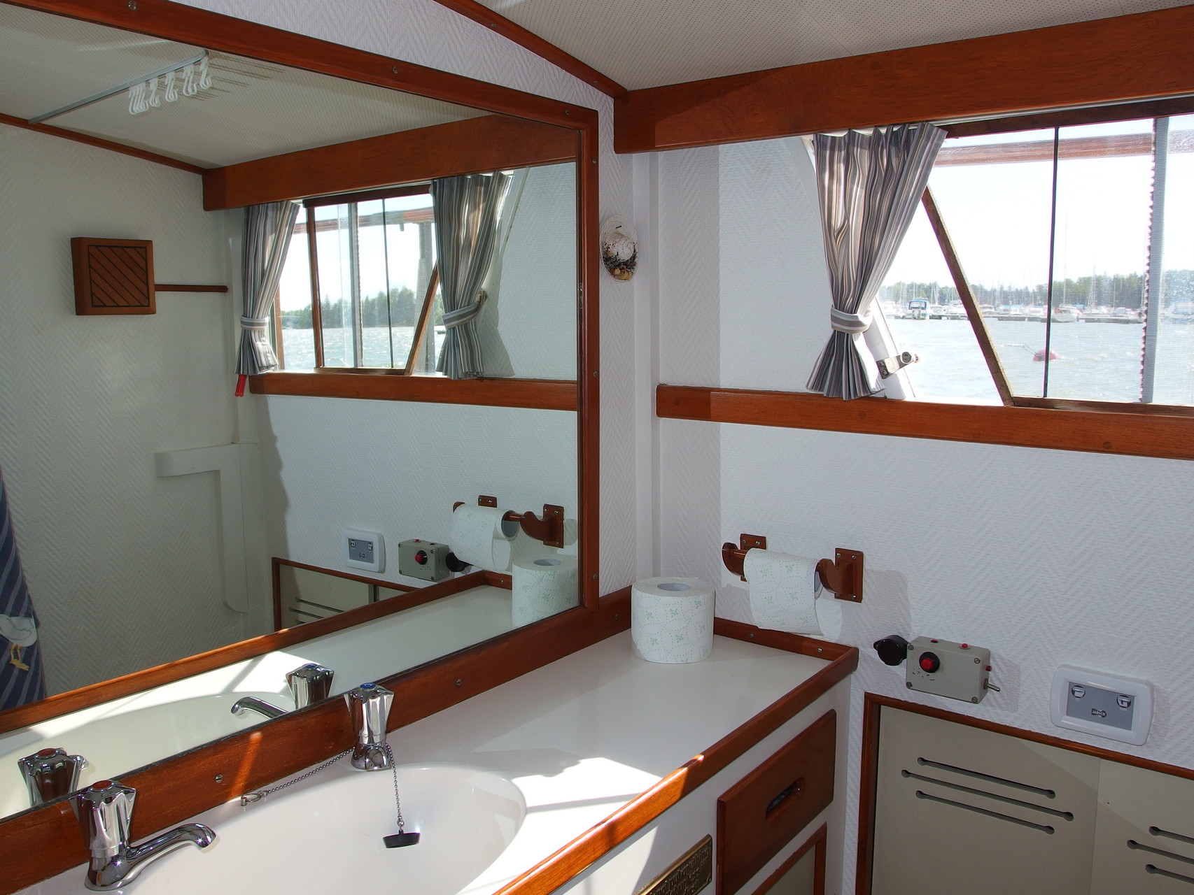 - Spiegelrahmen der Bugtoilette geschliffen und matt lackiert