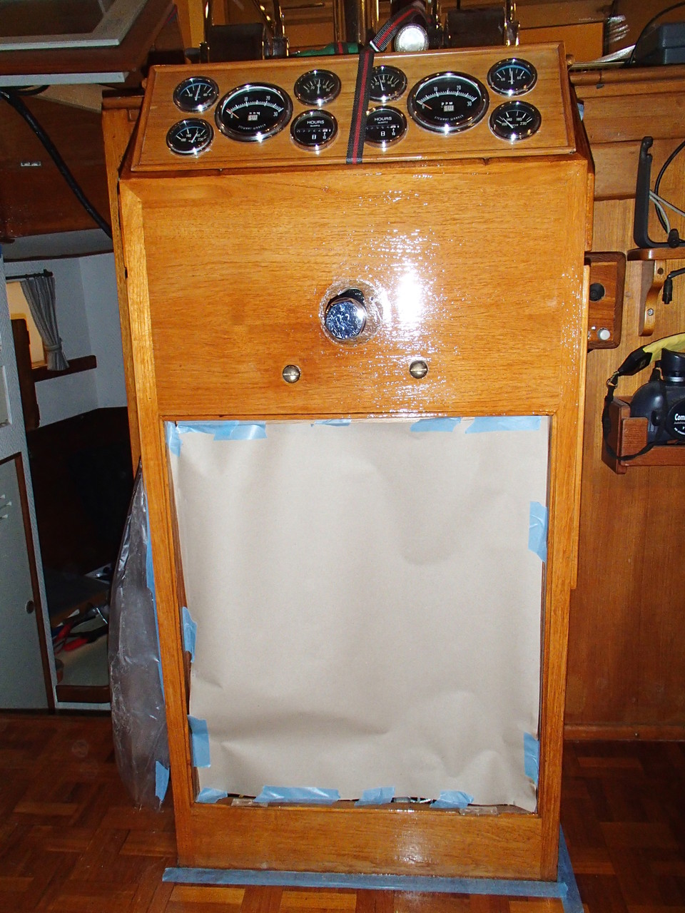 - Spiegelteakrahmen der Hecktoilette geschliffen und zweite Mal matt lackiert, fertig