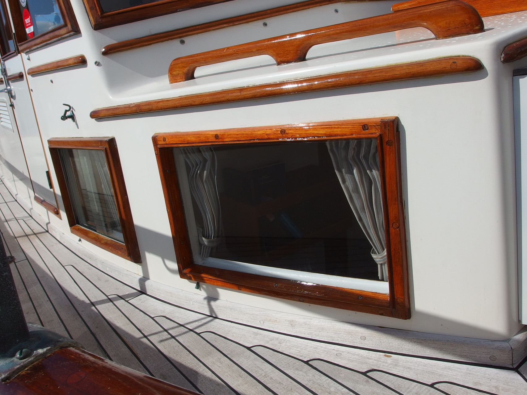 - vaihdetun ikkunan kehykseen laitetut teaktulpat katkaistu, hiottu ja lakattu